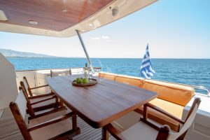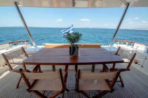 The charterer will be charged extra, at cost to the yacht, for all other expenses. These include fuel* for the yacht, fuel for the ski-boats or other tenders, food*, wine, beers, spirits and soft drinks for the Charterers (at retail super market prices), VAT (in Greece 11.5%) of the total yacht charter fee , other consumable stores, berthing dues and other harbor charges away from the yacht’s own berth, Corinth canal fees (if any), Private marine fees (if any), including pilotage fees and chargers for water and/or electricity taken from the shore, laundry, communications, hire costs of special equipment placed on board at the request of the Charterer, Gratuities for the crew.
