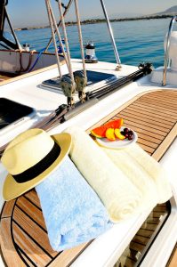 The charterer will be charged extra, at cost to the yacht, for all other expenses. These include fuel* for the yacht, fuel for the ski-boats or other tenders, food*, wine, beers, spirits and soft drinks for the Charterers (at retail super market prices), VAT (in Greece 11.5%) of the total yacht charter fee , other consumable stores, berthing dues and other harbor charges away from the yacht’s own berth, Corinth canal fees (if any), Private marine fees (if any), including pilotage fees and chargers for water and/or electricity taken from the shore, laundry, communications, hire costs of special equipment placed on board at the request of the Charterer, Gratuities for the crew.
