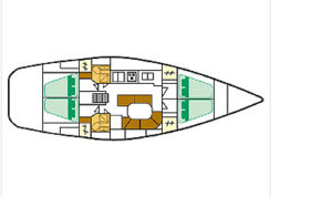 - Electric anchor windlass, Cockpit table, Cockpit shower, Cockpit Ice-box, Cockpit speakers, Steering wheel, Dinghy, Outboard, Spray Hood, Bimini.
