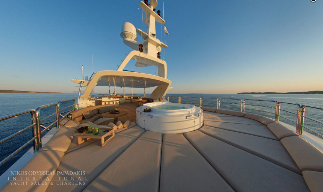 • Exceptionally voluminous unobstructed SUNDECK with oversized Pool JACUZZI, large sunbeds, al fresco dining, bar & Hard Top (major refits 2019, 2020, 2023) A large area of the Sundeck can be WELL PROTECTED from the sun and the wind with tents, creating an amazing place to enjoy during all hours of the day & night, even in windier and colder days
