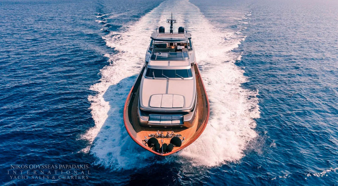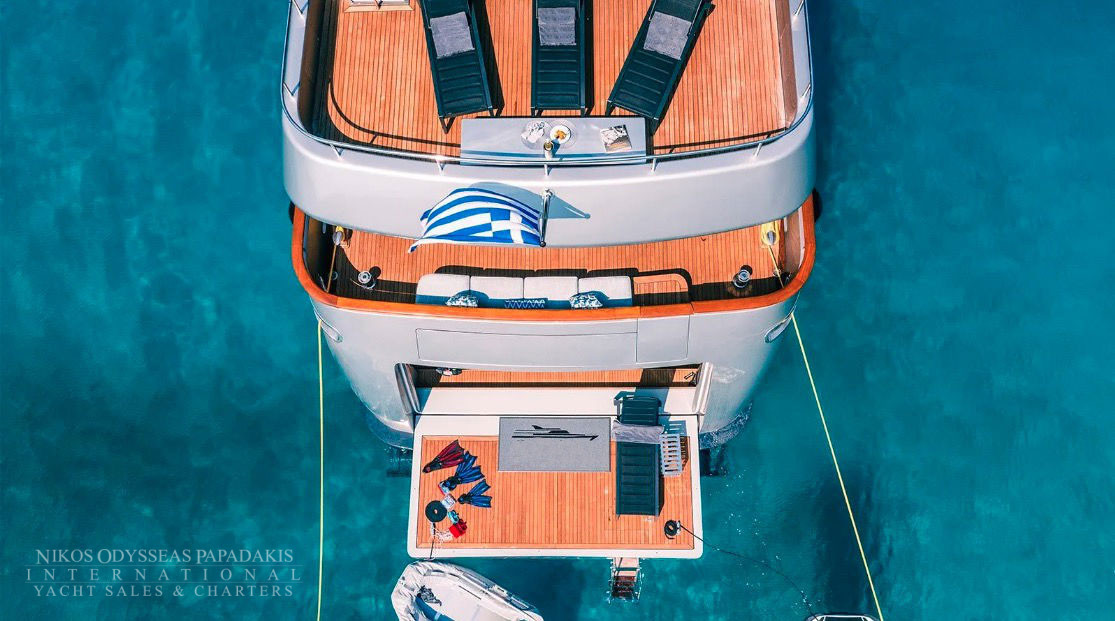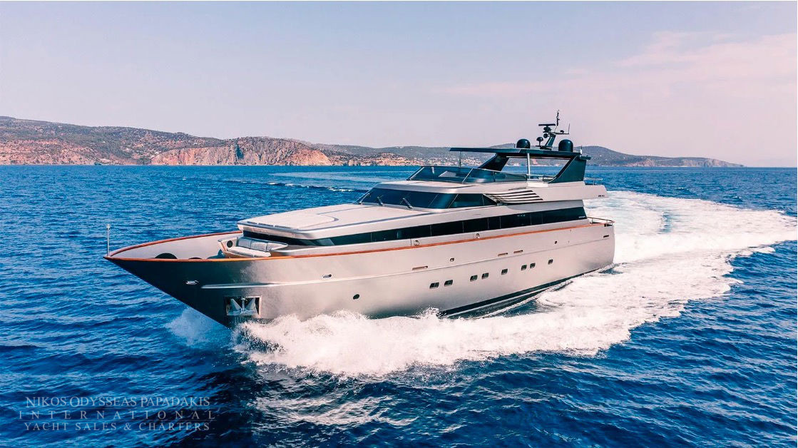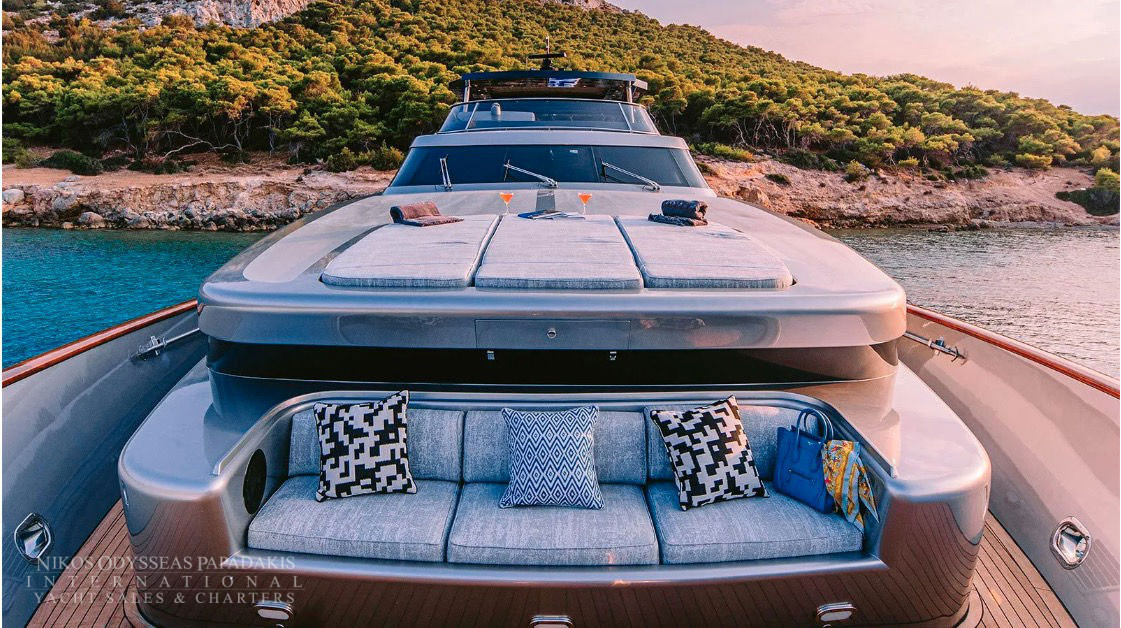 Cantieri Di Pisa Akhir 102 available for charter in Greece. Fresh from a stunning 2021 refit, she exudes contemporary sophistication in an unconventionally large and comfortable setting. She is a fantastic charter choice for families.