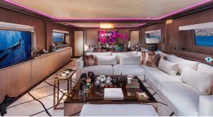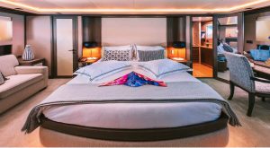 Another standout features is her expansive beach club. The ideal platform for sunbathing or jumping into the surrounding water, the beach club creates a totally new area on board for guests to soak up the sun. Undoubtedly a favorite spot for all ages – relax by the water’s edge or jump on a jet ski – the beach club provides seamless access to the surrounding ocean.