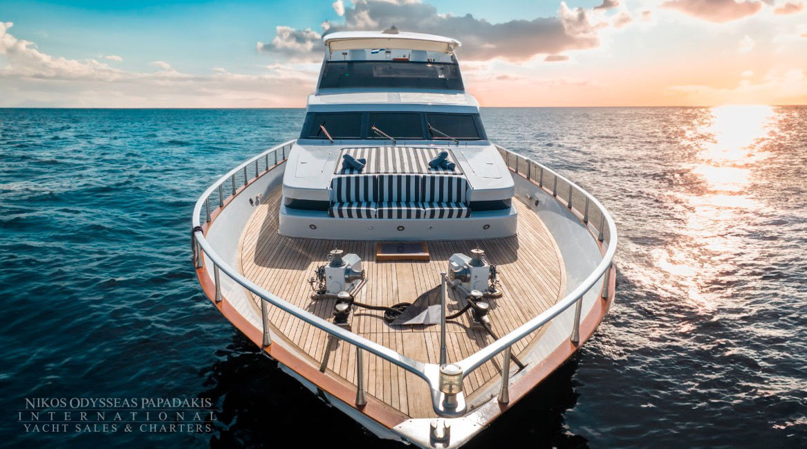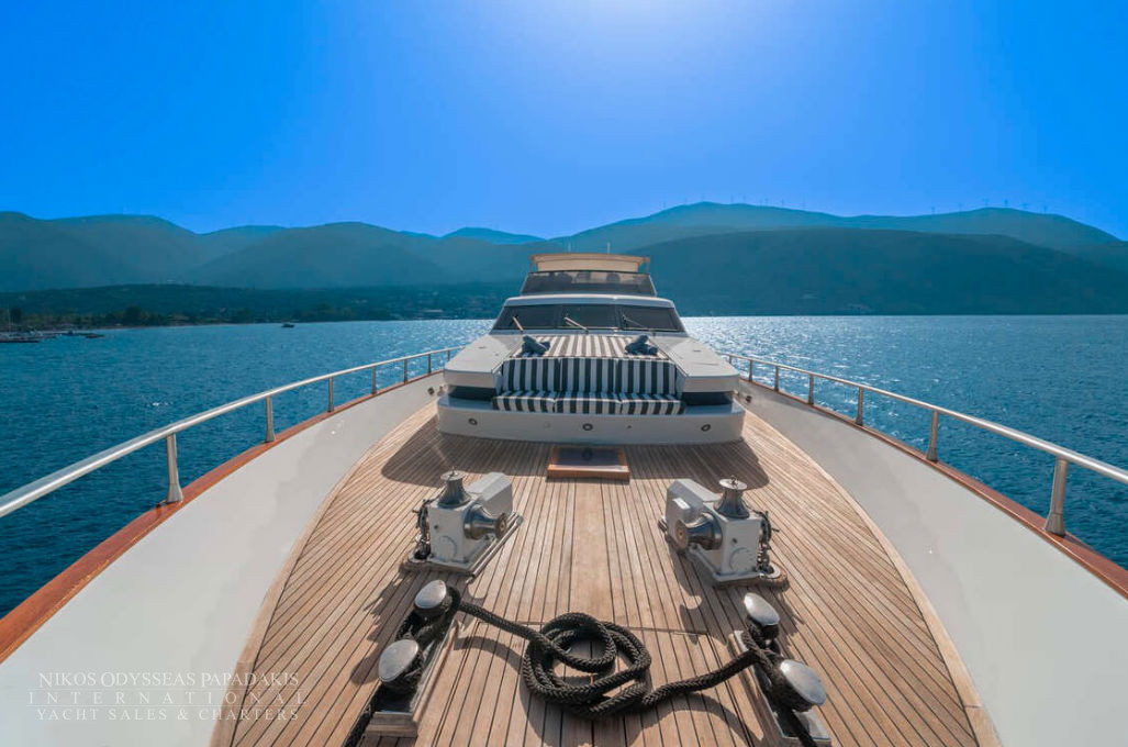 Experience the ultimate in relaxation and luxury aboard Akhir 24m, a classic motor yacht built by renowned Italian shipyard Cantieri di Pisa. With timeless elegance, modern amenities, and sophisticated simplicity, Cantieri Di Akhir 24m promises unforgettable moments on the water-perfect for those seeking a unique and indulgent yachting vacation in Greece or the Mediterranean.