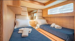 Flexible and Comfortable Accommodation : Accommodates up to 8 guests in 4 suites: a full-beam master, a full-beam VIP, and two twin cabins, each with luxury ensuite bathrooms and plush furnishings.