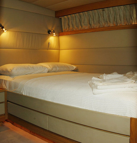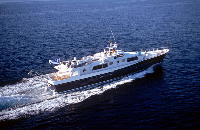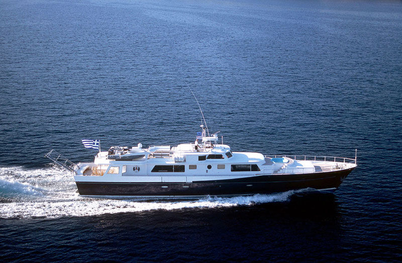 A “yacht with a pedigree”, built by the renowned German shipyard, Lϋrssen.This inspiring classic motor yacht has been fabulously refurbished and refitted in 2004. Enjoy a complete relaxing sail in the spacious saloon or relax on the shaded aft deck. Indoor dining in the formal dining area with plenty of sunbathing around the whirlpool Jacuzzi on the main upper deck. She provides the perfect combination of performance and relaxation with her triple mahogany hull, and her serene interior. She will take you to your destinations quickly, comfortably and safely. A huge array of active water sports is an added plus.
