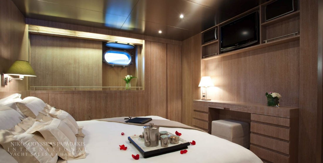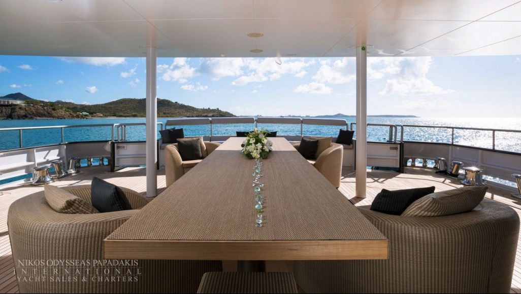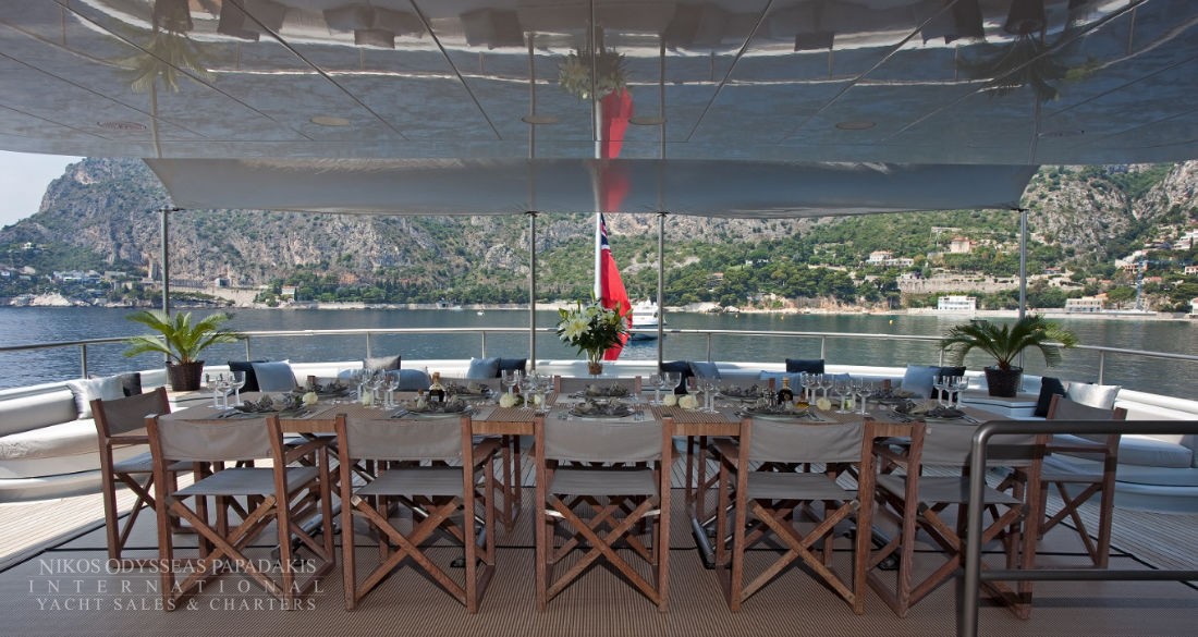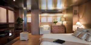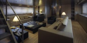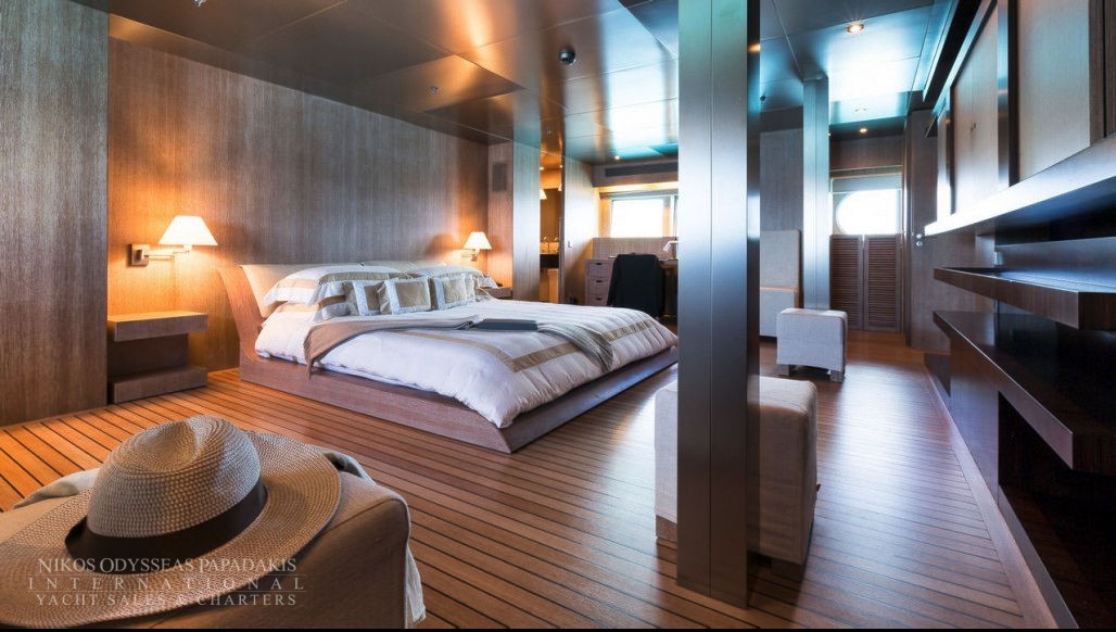 Designed by and built for iconic fashion designer Giorgio Armani, she is the height of fashion. Textures and tones found onboard include leather, richly grained woods and aluminium ceilings that have a soft reflective sheen, beautifully contrasting the rustic wide teak floorboards and bleached oak panelling.