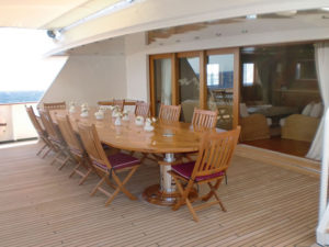 - The main saloon has a variety of seating areas and also a full bar. A further bar/lounge is located on the upper deck and this opens onto a superb dining area, perfect for lunchtime. For more formal dining there is a separate dining area on the main deck.