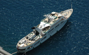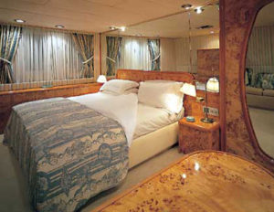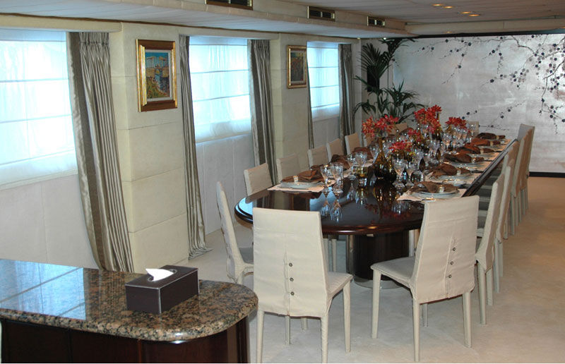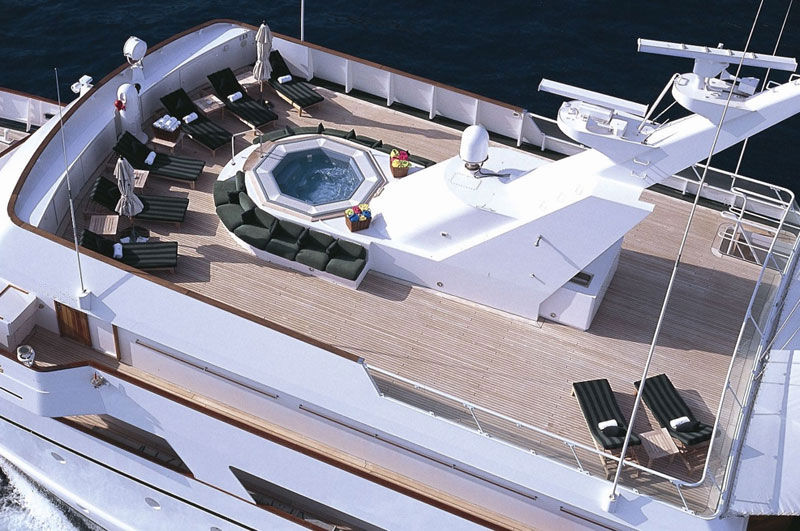 This fine ocean-going motor yacht was built in Italy and has continually been maintained to the highest standard. Renowned for her sea keeping ability, and comfort at anchor, she has gained an enviable reputation on the charter circuit. The yacht offers huge deck areas split over four levels making her perfect for either private or corporate entertaining in style. There two bars to choose from, one adjacent to the saloon and the other, the verandah bar, on the bridge deck. The aft deck, with its large circular table offers a more relaxed atmosphere for dining with panoramic views. All the accommodation is luxuriously appointed. The full-width Master Suite and the two VIP Suites each have their own lounge area, entertainment center and ensuite bathroom. The remaining State room and seven Twin Guest cabins all have ensuite bathrooms, end benefit from being on the main deck with the saloon and dining area. The truly experienced and international crew make sure that you enjoy every moment to the upmost.