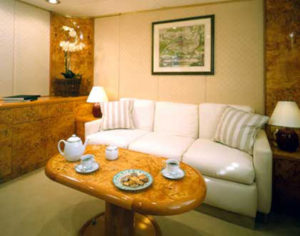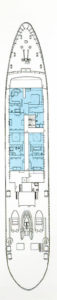 - Two VIP suites on the boat deck, each with queen size beds, lounge area and en suite bathrooms