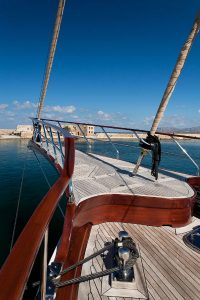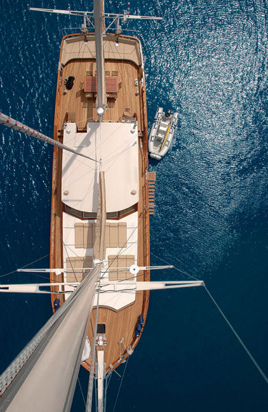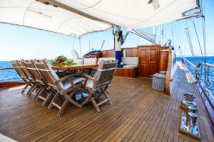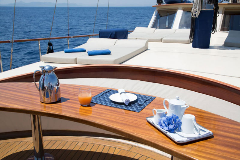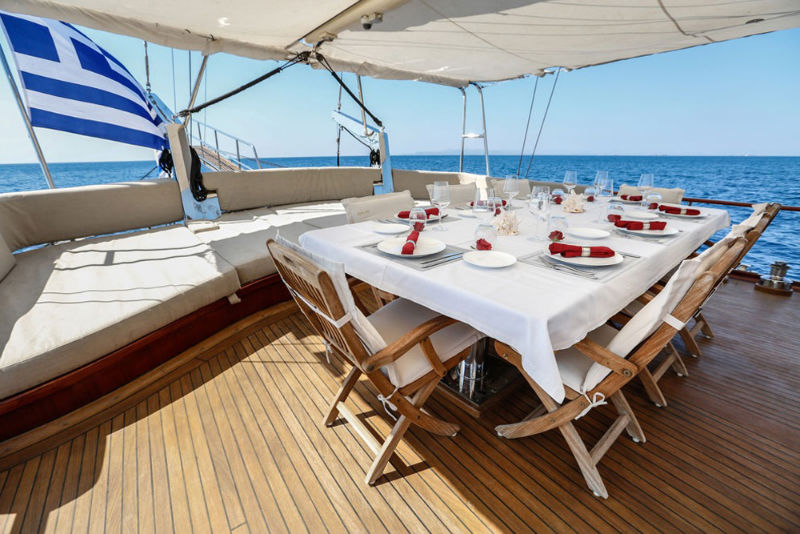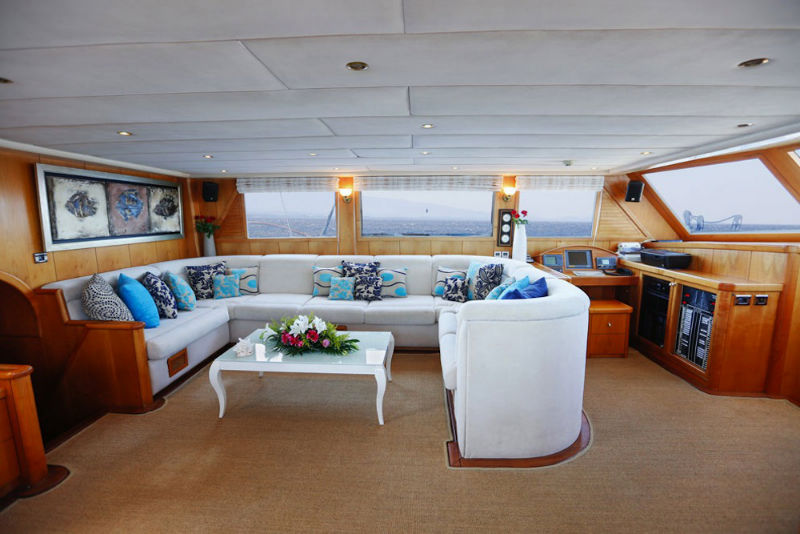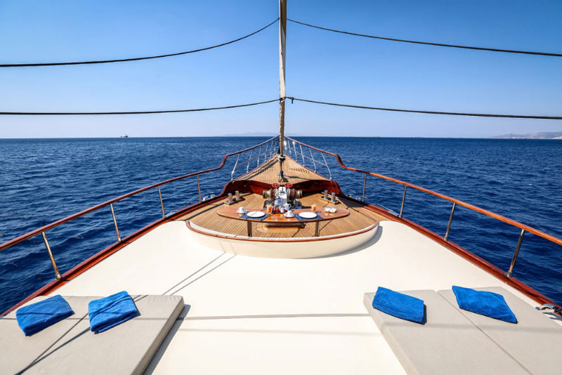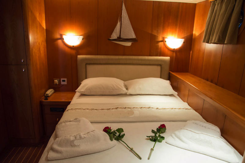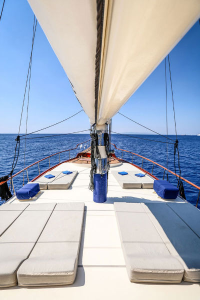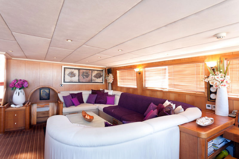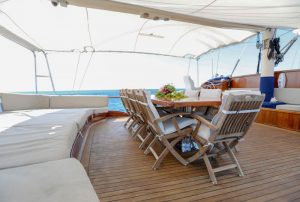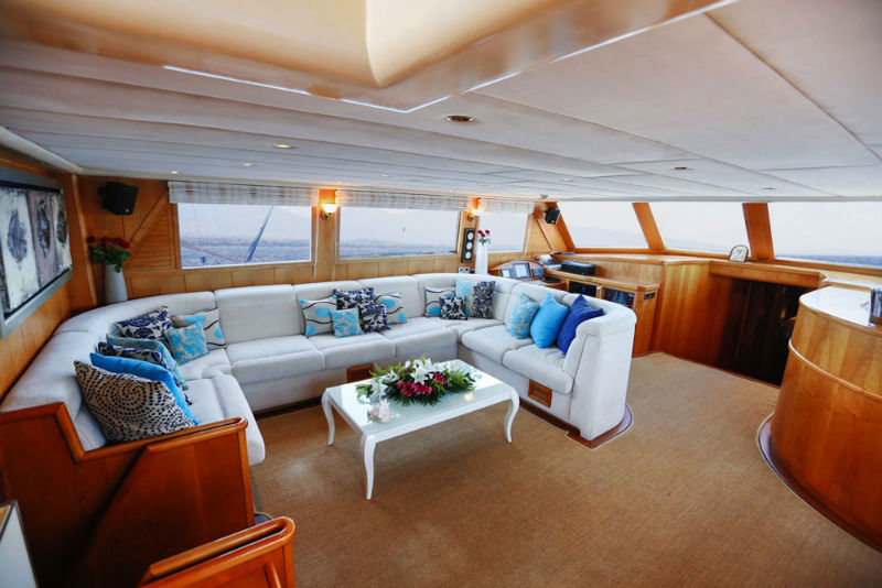 - The interior decoration of the cabins is simple and minimalist but very elegant. The aft is surrounded by a big cushion area where guests can relax and enjoy their cruise.
