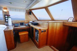 - The pilot house is just in front of the entrance, at the end of the lounge, and on the left side you will find the chart table with the most modern equipment of communication and navigation.