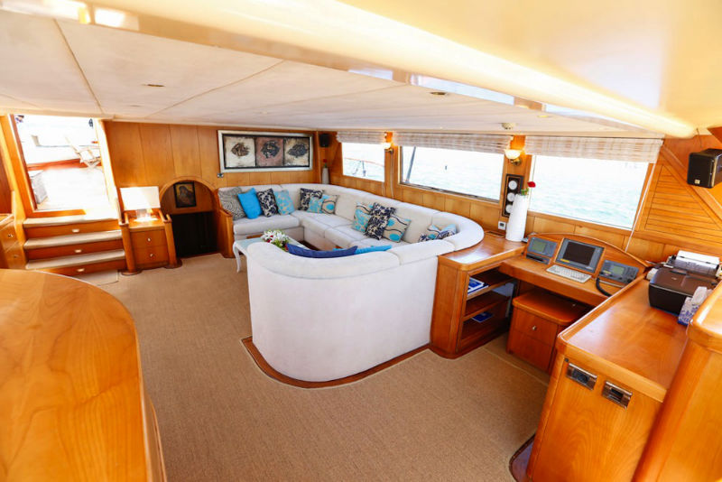 - All the floors are made from mahogany wood and the walls from precious African cherry wood, giving the yacht a wonderful atmosphere.