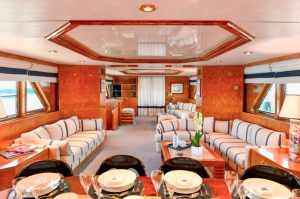 The yacht charter fee includes the charter of the yacht with all its tools, stores, cleaning material and basic consumable stores for engine room, deck and cabins, etc., the crew’s wages, food and the insurance of the yacht for marine risk and third party claims and the crew for employer’s liability insurance, water and ship’s laundry.