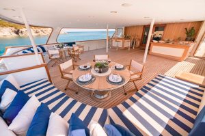 The yacht charter fee includes the charter of the yacht with all its tools, stores, cleaning material and basic consumable stores for engine room, deck and cabins, etc., the crew’s wages, food and the insurance of the yacht for marine risk and third party claims and the crew for employer’s liability insurance, water and ship’s laundry.
