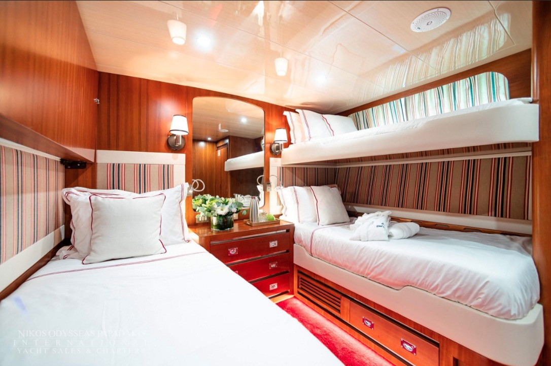 • 1 Master suite, 1 VIP stateroom and 5 twin cabins.