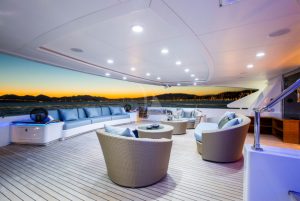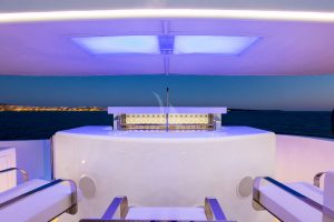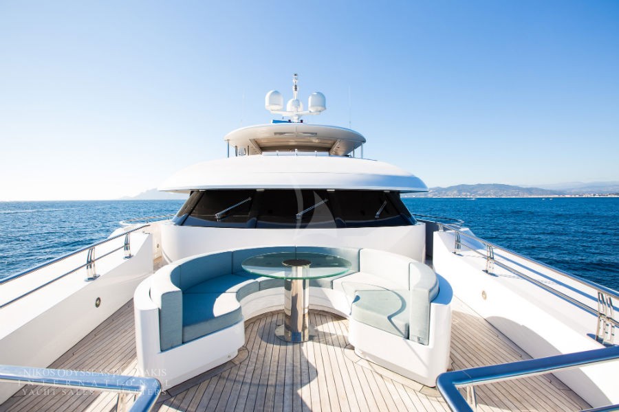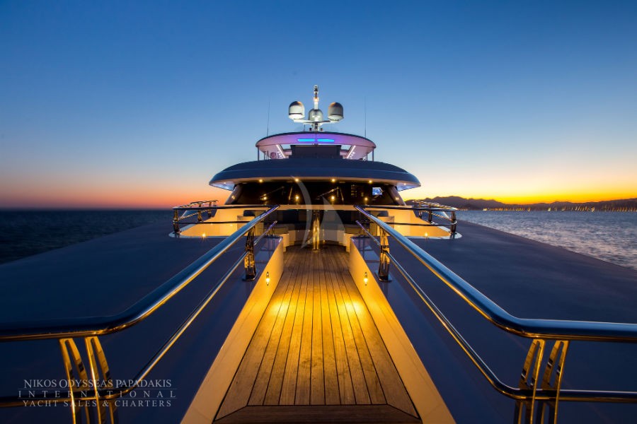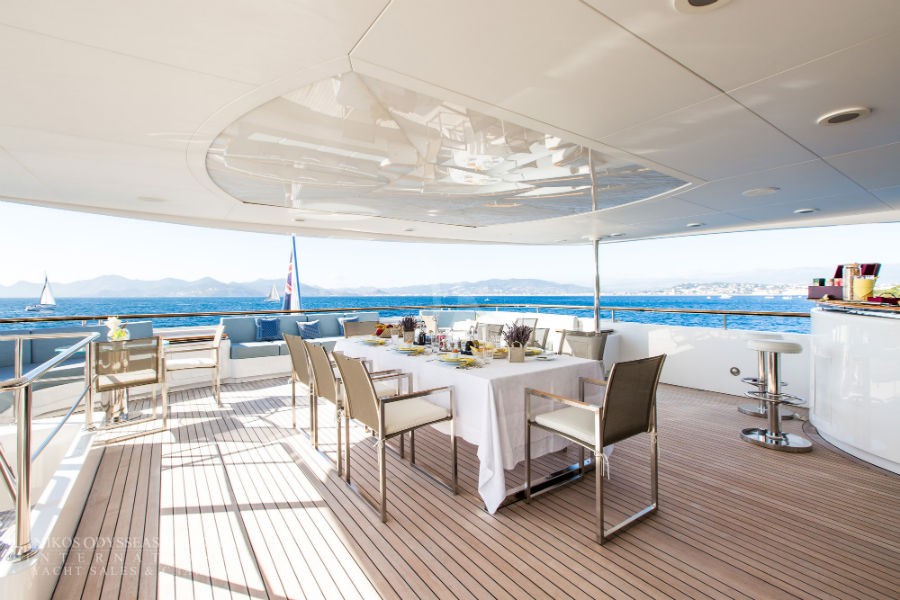 Refit in 2015. Zero speed stabilizers. Large swimming platform just above the sea level. Retractable roof on the Sundeck