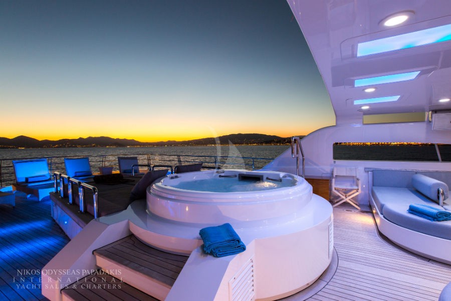 Hull configuration: Air conditioning, Deck Jacuzzi, Stabilisers at anchor, Stabilisers underway