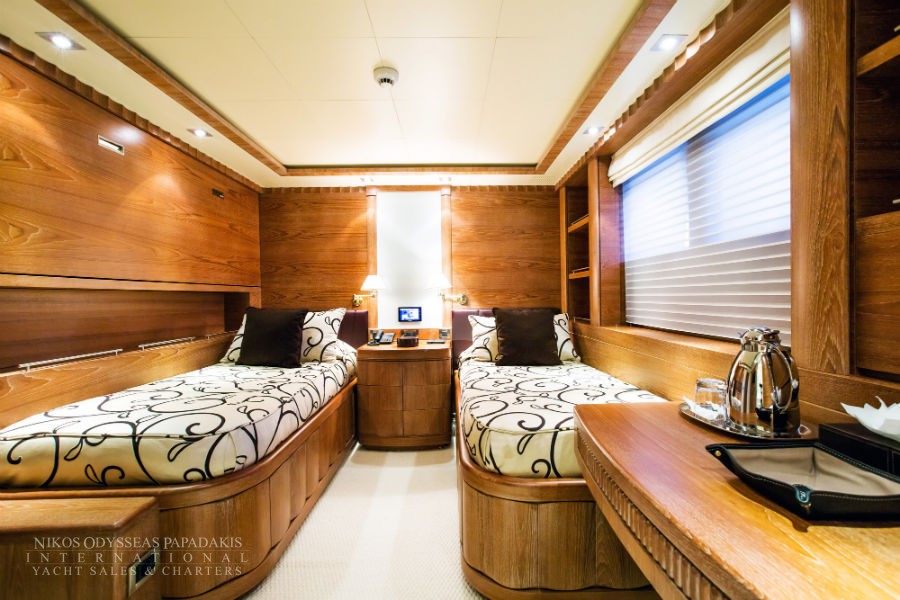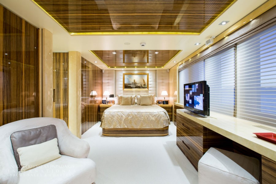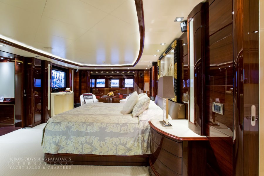 Voluminous, luxurious and classic interior design with comfortable cabins. Very experienced and charter oriented captain and crew.