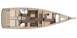 A Grand Large 560 built by Dufour in 2014, has been designed to satisfy customers seeking the perfect balance of performance, style, luxury and comfort. She can accommodate 6 guests in a large master cabin and 2 double guests cabins. She is offered with Captain and on request with Cook/stewardess.