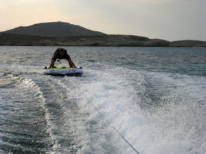 The charterer will be charged extra, at cost to the yacht, for all other expenses. These include fuel* for the yacht, fuel for the ski-boats or other tenders, food*, wine, beers, spirits and soft drinks for the Charterers (at retail super market prices), VAT (in Greece 11.5%) of the total yacht charter fee , other consumable stores, berthing dues and other harbor charges away from the yacht’s own berth, Corinth canal fees (if any),  Private marine fees (if any), including pilotage fees and chargers for water and/or electricity taken from the shore, laundry, communications, hire costs of special equipment placed on board at the request of the Charterer, Gratuities for the crew.