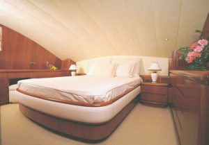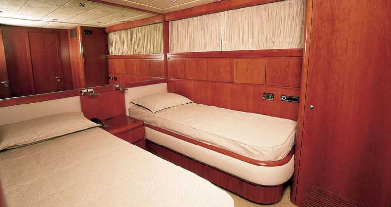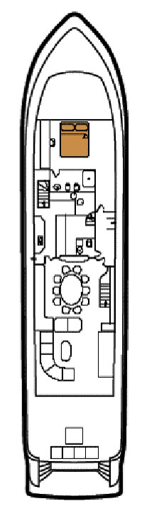 - VIP, main deck, queen size bed, SAT TV, stereo, writing desk.