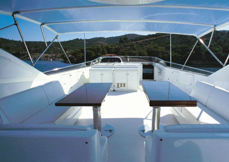 Falcon,built in 2002 combines modern with classic aboard 100 feet of luxury and power. With her streamlined profile and dual MTU engines delivering a 27kn top speed and boasting sumptuous internal fittings, represents a unique blend of power and luxury. In an environment full of uncompromised options for relaxation, sunbathing and resting, nothing can interrupt the private moments of her passengers.