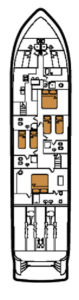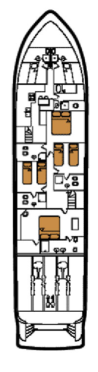 - 10 guests in 5 cabins, all with en suite facilities, air conditioned throughout with individual climate