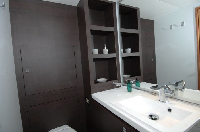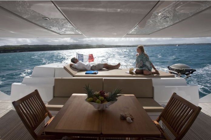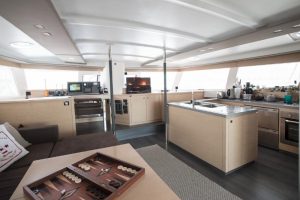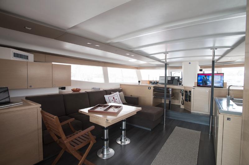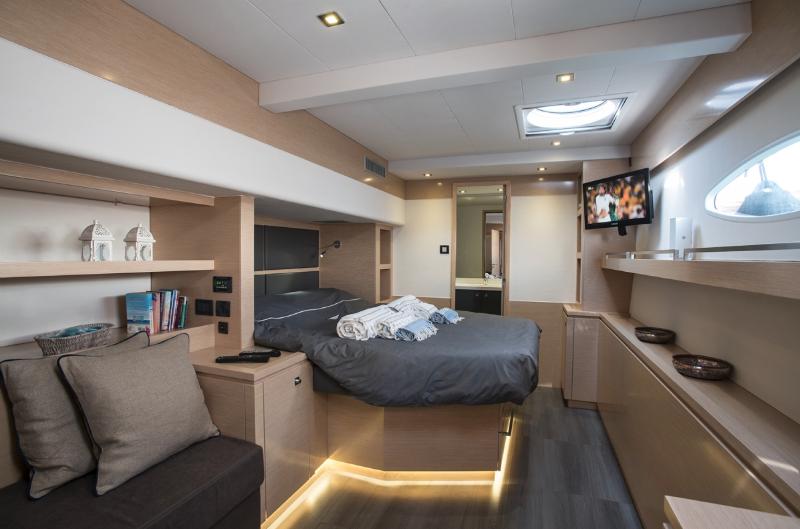 Fountain Pajot 57 built in 2014 is modern and chic, featuring light and dark earthy tones and soothing neutral soft furnishings. The salon and dining offers a large seating area with integrate formal dining table, well-appointed large galley and full entertainment systems. Surrounding windows bring in ample natural light, while providing spectacular views. Guest accommodation is in the port and starboard hulls, each with private en-suite facilities. She offers 4 stylish guest cabins, each with TV/DVD entertainment and private en-suite facilities. The master cabin is on the port side, with a queen size bed, vanity and love seat. Three guest cabins each have queen size beds. She has plenty of hatches and ports that provide ample natural light and cool sea breezes. The yacht boasts full air conditioning throughout, for optimum comfort.