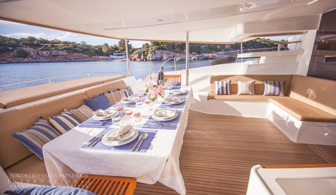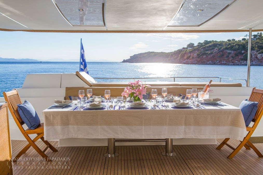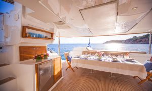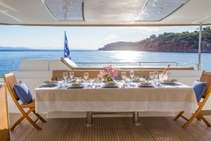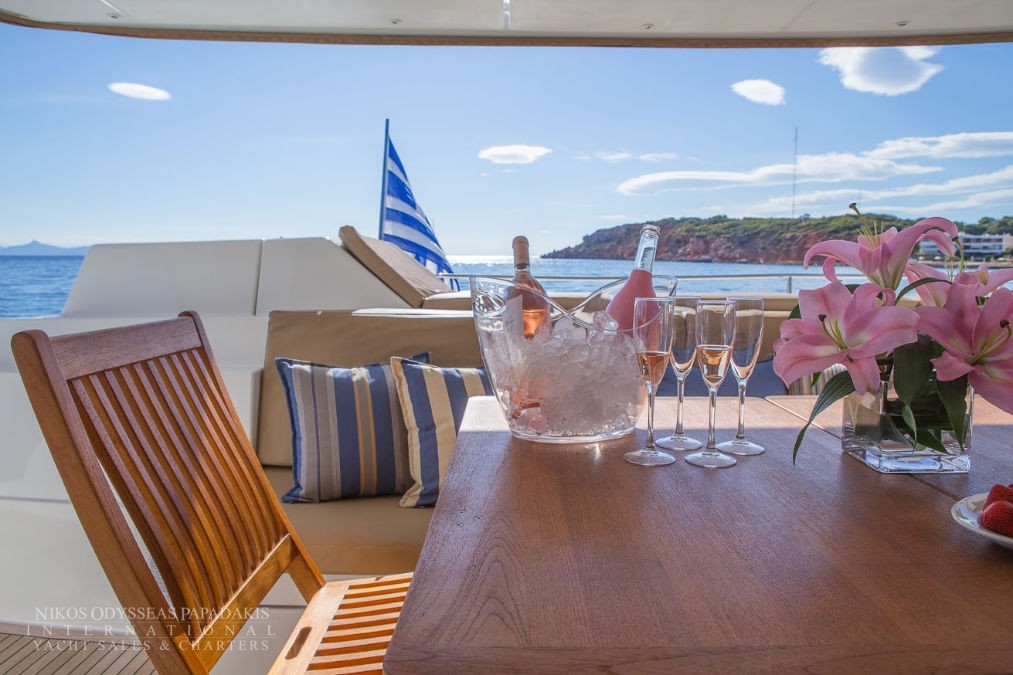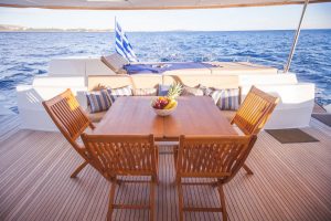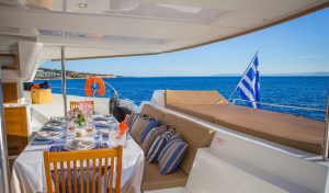 The charterer will be charged extra, at cost to the yacht, for all other expenses. These include fuel* for the yacht, fuel for the ski-boats or other tenders, food*, wine, beers, spirits and soft drinks for the Charterers (at retail super market prices), VAT (in Greece 11.5%) of the total yacht charter fee , other consumable stores, berthing dues and other harbor charges away from the yacht’s own berth, Corinth canal fees (if any),  Private marine fees (if any), including pilotage fees and chargers for water and/or electricity taken from the shore, laundry, communications, hire costs of special equipment placed on board at the request of the Charterer, Gratuities for the crew.