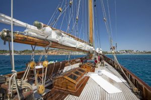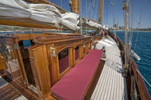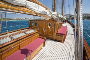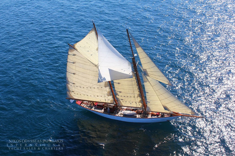One of the very few Classic Gaff Schooners sailing today, after her extensive major refit 2009 to 2011, she is kept in excellent shape and maintained to a pristine condition. No words or pictures can describe the feeling of sailing onboard this yacht of a bygone era. She was designed in 1919 and launched in Hamburg in 1921 by Max Oertz, probably the most famous German shipbuilder of his time. Oertz built the famous imperial schooners Germania and Meteor IV for German Kaiser Wilhelm II.