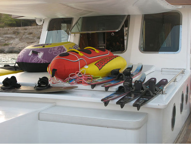 - wake board, 3 seat banana, snorkles