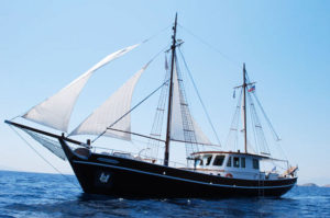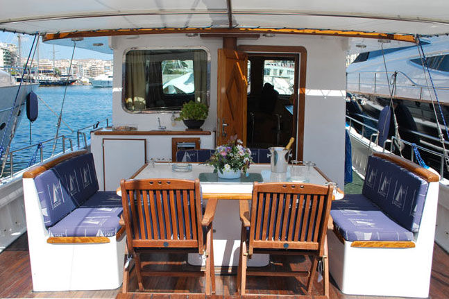 Greek Motor Sailer built with materials of pine wood, iroco wood and teak wood.Exceptional interior in lounge and cabins.Her aft deck is perfect for al fresco dining. She is equipped with numerous sea toys for enjoyment. Accommodation for 8 guests in 4 luxurious cabins.