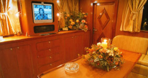 - Each stateroom has refrigerator, mini bar, radio and CD player.