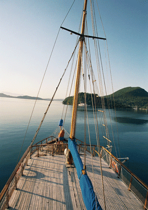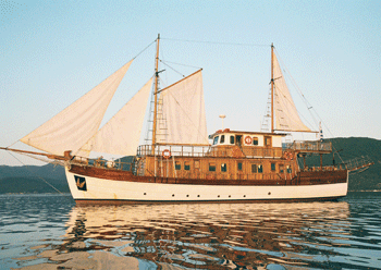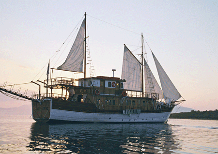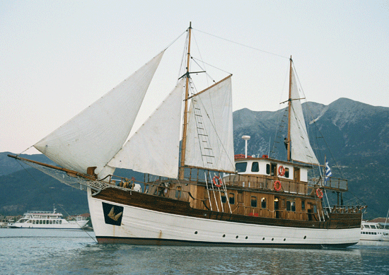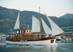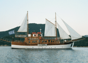 A wooden vessel which combines the character and art of a traditional Greek craft with the luxury and safety of a modern sailing vessel. She can accommodate up to thirty guests in twelve luxurious cabins, all of which have their own facilities and are fully air conditioned. The captain and crrew specialise in cruises around the Ionian islands, but of course all the Greek islands are included in their itinerary, which is, of course, determined according to the clients wishes!