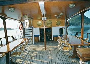 • The lower deck has a shaded dining area where guests can enjoy all meals – from breakfast to dinner.