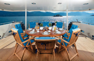 The yacht charter fee includes the charter of the yacht with all its tools, stores, cleaning material and basic consumable stores for engine room, deck and cabins, etc., the crew’s wages, food and the insurance of the yacht for marine risk and third party claims and the crew for employer’s liability insurance, water and ship’s laundry.