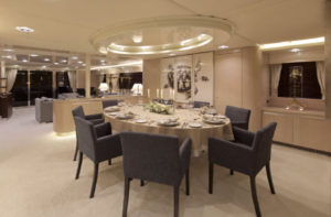 Built by Heesen famous shipyard, she has been last refitted in 2012. She features a fantastic blend of classic and contemporary styling thanks to her classic exterior design build combined with a fashionable, modern interior. In 2007 the yacht was re-fitted to the highest specifications. Her spacious saloon and dining area are dominated by strong lines and bold colours. In contrast, her full-width Master and VIP cabins feature a collection of muted colours and delightfully soft fabrics.