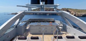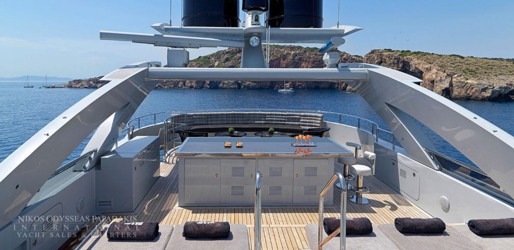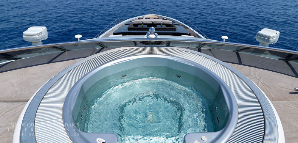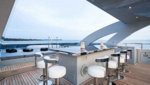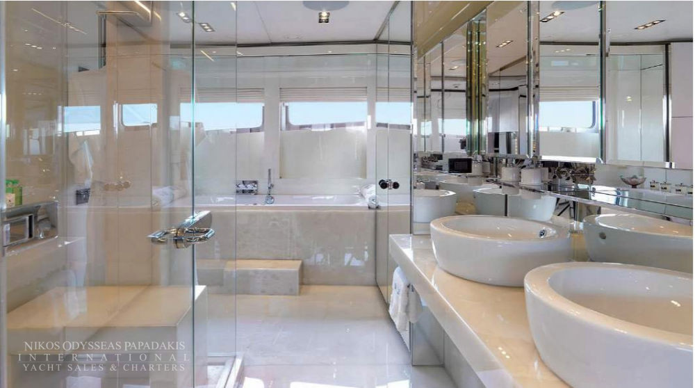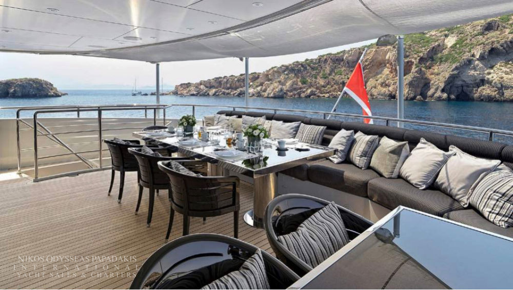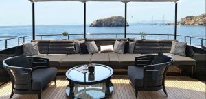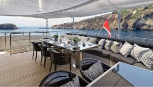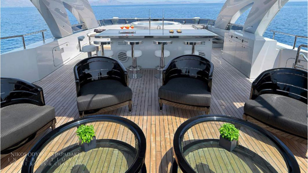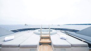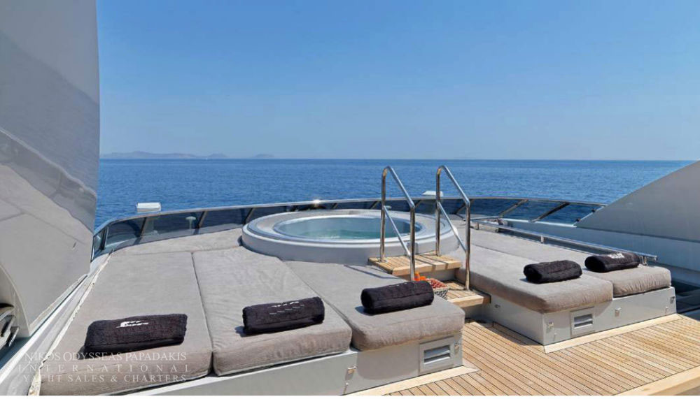 Accommodates 12 guests in 5 cabins. Upper salon can be converted as an extra guest cabin. Professional and accommodating crew. Portuguese style seating in the bow. Vast and spacious sundeck Massive swim platform at stern Jacuzzi on board. Portuguese style bow seating 13 meter Tender.