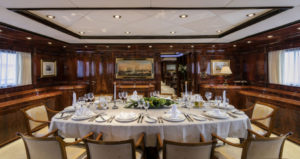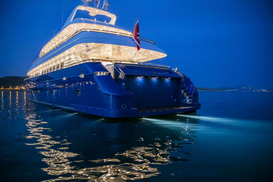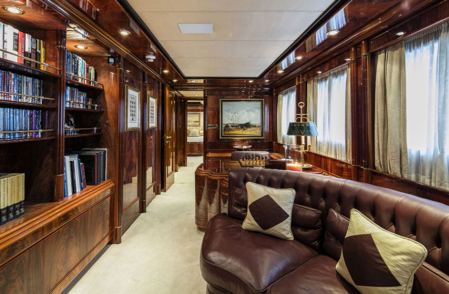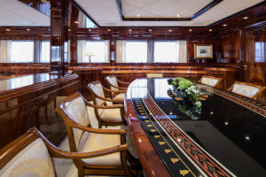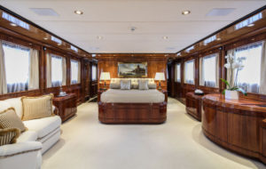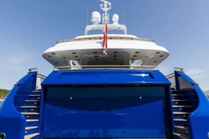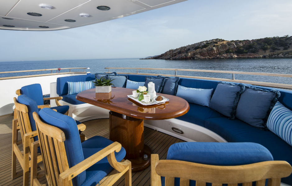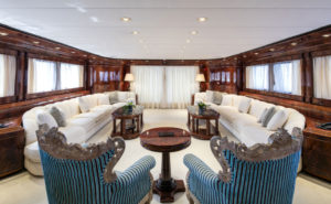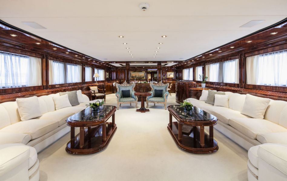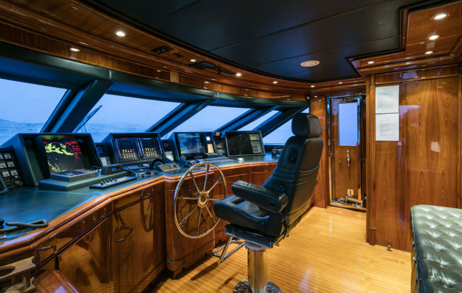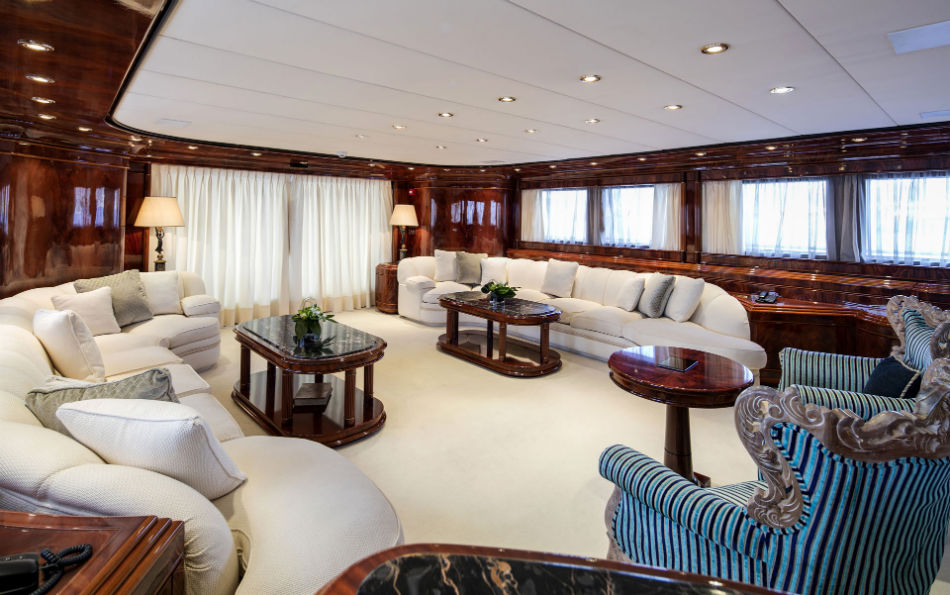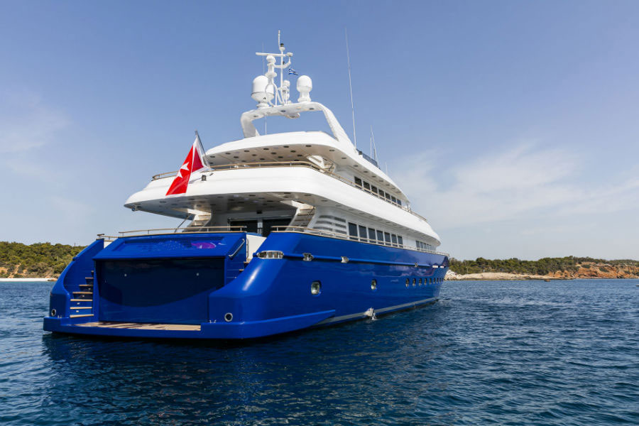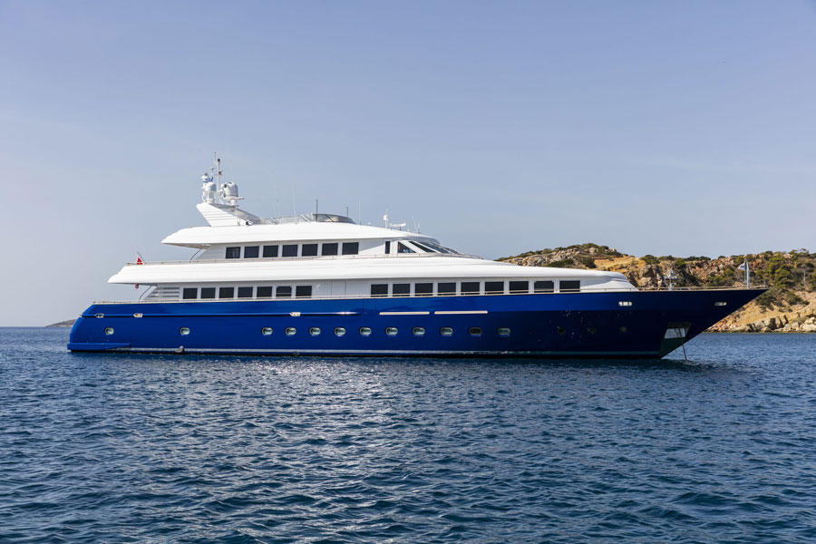 This beautiful state of the art semidisplacement Megayacht is considered the flagship of the Greek charter fleet. Launched in 1997 by Intermarine Spa, Italy, she is well built, appropriately planned, designed with sobriety and classical elegance featuring unusually large spaces. Giorgio Vafiadis is responsible for the design of this truly remarkable yacht. Her luxurious interior is adorned with mahogany panelling, hand made fabrics and custom made carpeting. She meets and exceeds International standards. This unique charter yacht will satisfy the most demanding client. The main deck comprises a sizeable aft sunning area. All cabins are spacious, airy and comfortable with individual entertainment systems, televisions and video equipment that can be selected in preference to the centralised systems which operate in the saloon, library, aft decks and flybridge.