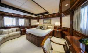 - Two Double bedded cabins with walk in closets on the lower deck.