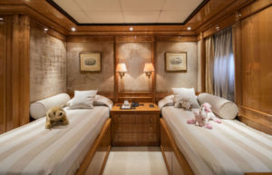 - One Twin cabin with i-shape beds on the lower deck. ( These two twins are separated by a sliding partition that allows them to combine into one large stateroom.