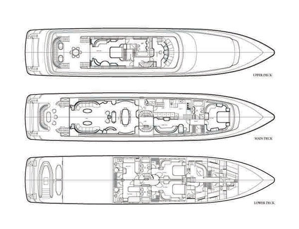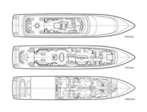 - One full beam VIP cabin with double bed, walk in closet, adjoining study, jacuzzi and shower on the upper deck.