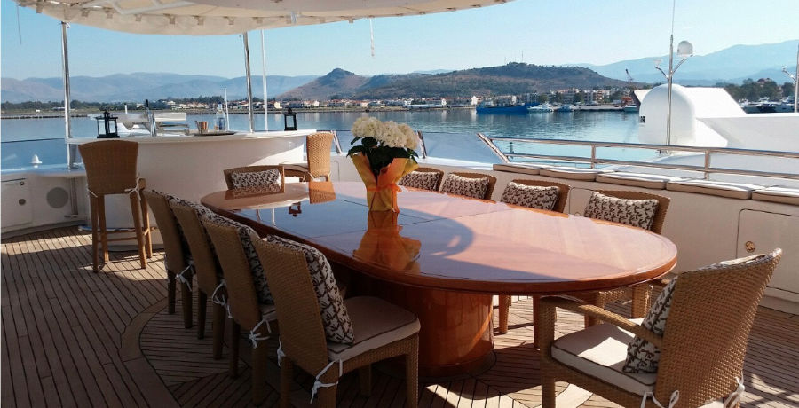 The charterer will be charged extra, at cost to the yacht, for all other expenses. These include fuel* for the yacht, fuel for the ski-boats or other tenders, food*, wine, beers, spirits and soft drinks for the Charterers (at retail super market prices), VAT (in Greece 11.5%) of the total yacht charter fee , other consumable stores, berthing dues and other harbor charges away from the yacht’s own berth, Corinth canal fees (if any), Private marine fees (if any), including pilotage fees and chargers for water and/or electricity taken from the shore, laundry, communications, hire costs of special equipment placed on board at the request of the Charterer, Gratuities for the crew.