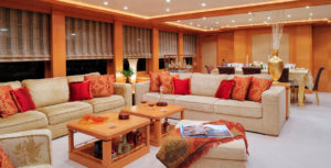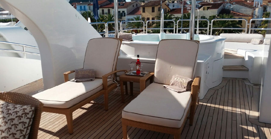 With her classic and elegant lines, the 47.5m (155′) SHE offers an ideal environment for relaxation on the sundeck in her inviting outdoor lounge area with a twelve person Jacuzzi. Her luxurious and classy interior underwent a recent refit (2016) rendering her in immaculate condition. She consists of six staterooms for twelve guests; a spacious Master Cabin on the main deck, four guest cabins on the lower deck plus two pullman beds and a bright VIP cabin on the upper deck all with en suite facilities.