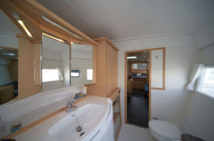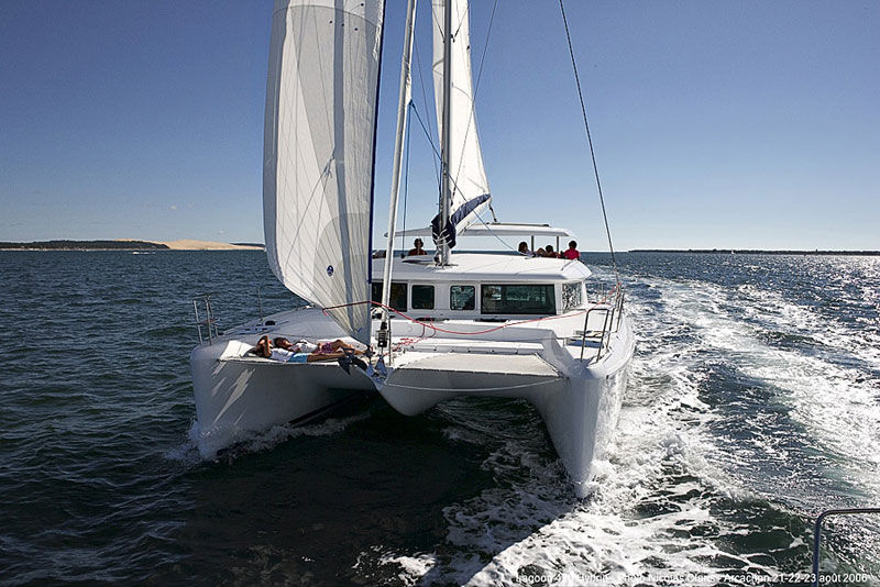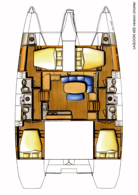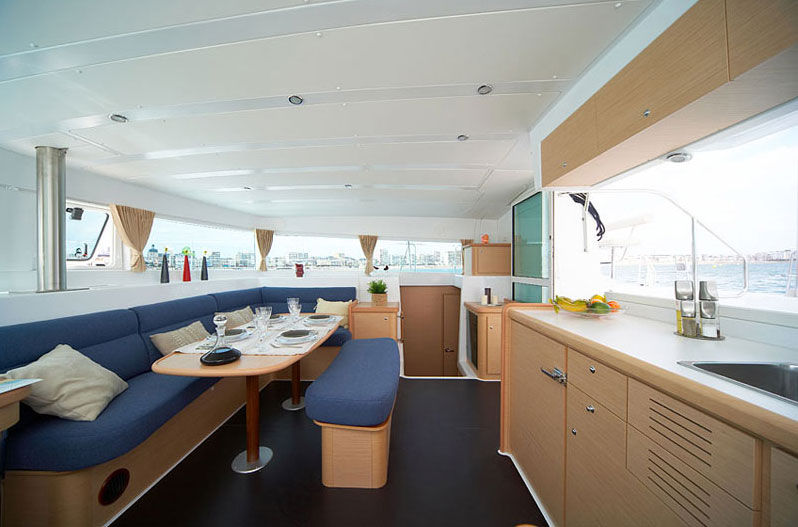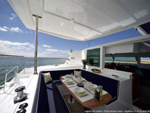 The new Lagoon 42 provides a comfortable configuration for one family or two – with extra space for your skipper. This cat offers wide cabins and ample space in the aft cockpit for your dining pleasure.