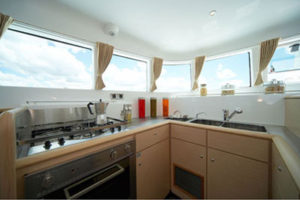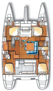 Lagoon 500 built in 2009 ready to offer you unforgettable sailing. Five ensuite cabins + separate accommodation for the crew. The main saloon, located on the bridgedeck between the hulls, has a center table that is large enough to seat 10 in comfort. A good-size galley to port boasts a large oven and grill, a refrigerator, and freezer, plus a dishwasher and additional freezer and refrigerator space. The nav station on the starboard side of the main saloon has a full set of steering and engine controls as well as ample space for charts and electronics.