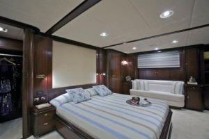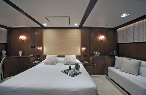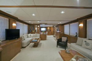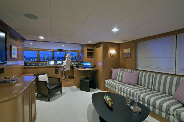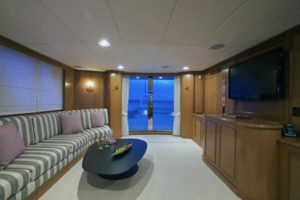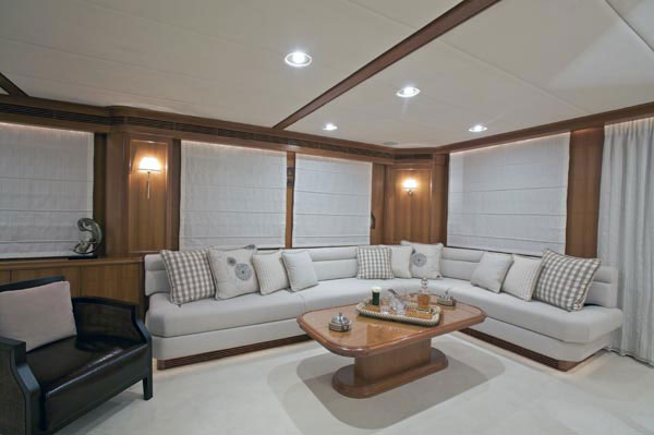 - Yacht offers a unique sky lounge with built in settee, a semi circular seating area and cocktail table with glass top.