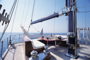 The charterer will be charged extra, at cost to the yacht, for all other expenses. These include fuel* for the yacht, fuel for the ski-boats or other tenders, food*, wine, beers, spirits and soft drinks for the Charterers (at retail super market prices), VAT (in Greece 11.5%) of the total yacht charter fee , other consumable stores, berthing dues and other harbor charges away from the yacht’s own berth, Corinth canal fees (if any), Private marine fees (if any), including pilotage fees and chargers for water and/or electricity taken from the shore, laundry, communications, hire costs of special equipment placed on board at the request of the Charterer, Gratuities for the crew.
