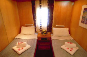 • Located on the Main Deck and have large windows.The cabins are small but comfortable yacht style cabins, with small private shower with WC nd small wardrobes.