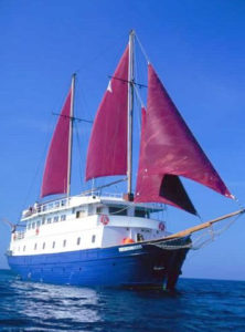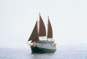 • There are two ample open deck areas to enjoy the sea air, views and sun, and an area with sunning chairs, deck chairs and tables. Weather perimitting the vessel also uses her two mast rigging to sail the sultry summer winds, offering a uniquely peaceful experience.
